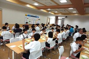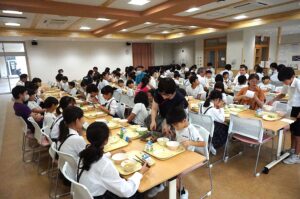 いつもとはちょっと違う給食時間に、低学年の子供たちは少しドキドキしたようです。今年度初めてということもあり、緊張している様子の子もいましたが、時間が経つにつれて笑顔が増え、楽しい会話があちこちで聞こえてきました。