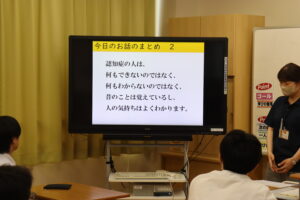 6年生と9年生が認知症サポーター養成講座を受講しました。認知症は脳の病気で、身近で誰にでも起こりうるものです。近年は、認知症高齢者が増えているというお話を聞きました。また認知症の症状と接し方を聞いたことで、今後の関わり方の参考になったと感想に書いている子供がいました。