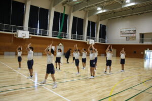 振付では、体を左右に移動する際に「肩から動きを入れること」、腕は「大きく回して動きを大きく見せること」、そして「指先まで意識してしっかり伸ばすこと」に注意しながら、曲の半分ほどの動きを確認しました。