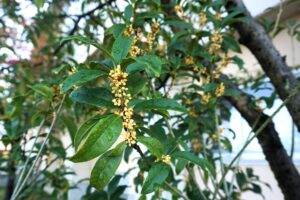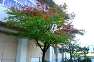 熱気に包まれた体育館の窓を開けると、ふわりと甘い香りが漂い、金木犀の花が咲き始めたことに気付きます。隣に立つカエデの葉も、緑から赤へと美しいグラデーションを描き、秋の訪れを静かに知らせてくれます。