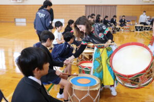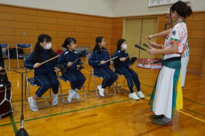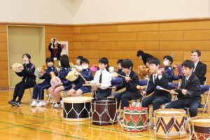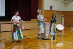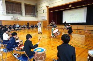 体育館いっぱいにリズミカルな音が響き渡り、子供たちは音楽の楽しさや世界の文化の豊かさを体感することができました。笑顔あふれる、心躍るひとときとなりました。