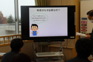 税金の種類や租税の歴史、税金の使い道などをクイズを交えて分かりやすくお話いただきました。