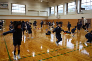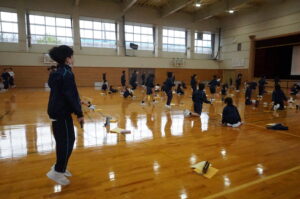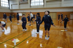 「疲れずに長くなわとびを跳ぶコツ」を聞き、いろいろな跳び方に挑戦しました。