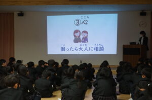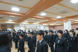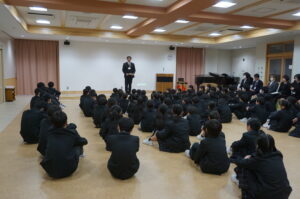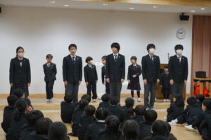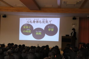 その後、生徒指導部からは①健康 ②安全 ③心 を大事にして元気で冬休みを過ごしてほしいと話がありました。