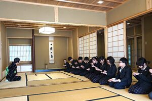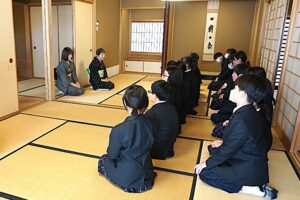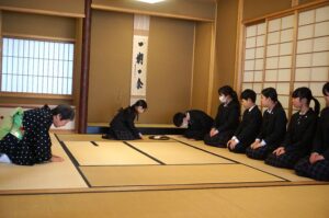 5、6年生は、総合的な学習の時間の一環として、地域の講師の方のご指導のもと、いのくち椿館の和室で茶道体験を行いました。