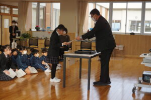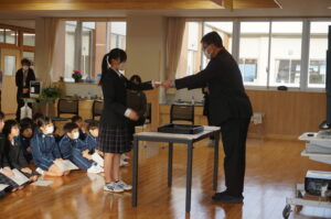 銀賞を受賞した子供たちは低学年、中学年、高学年、中等部の代表者が賞状を受け取りました。