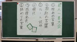 本日、百人一首大会・かるた大会を行い、多くの保護者の皆様にもご参観いただきました。