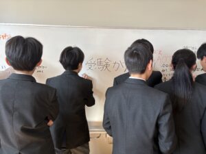 今日は、富山県内の私立高校で一般入学試験が行われました。9年生の先輩方が全力を出し切れるように、昨日7、8年生がホワイトボードにメッセージを書いて思いを伝えました。
