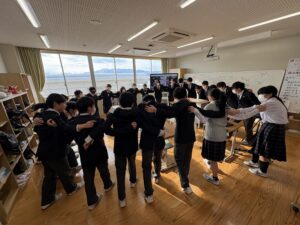 その後、9年教室で激励会を行いました。最後にみんなで円陣を組んで士気を高めました。