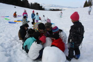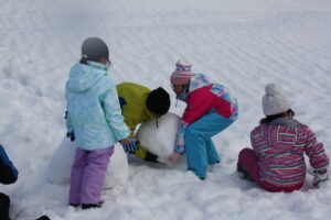 後半には、班ごとに協力して雪像づくりにも取り組みました。