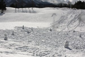 1~6年生は「ふるさと学習(地域のよさ体験)」として「トナミロイヤルゴルフ倶楽部」を訪れ、青空がのぞく暖かな天候のもと、縦割り班で雪と触れ合う活動を行いました。