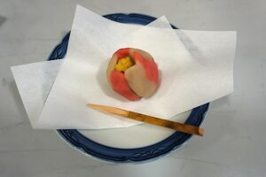 「お菓子班」は、1月の茶道体験でいただいたお菓子をヒントに、椿の形の練り切りを作りました。