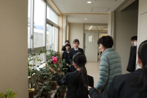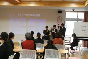 「お茶班」は、椿の葉を使い、試行錯誤を重ねてオリジナルの「椿茶」を完成させ、抹茶とほうじ茶をお出ししました。