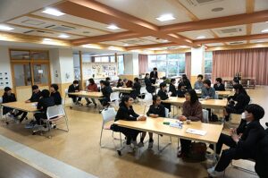 5、6年生は、2学期の家庭科の裁縫の学習や、1月の茶道体験でお世話になった7名の地域の方々をお招きし、「感謝のおもてなしお茶会」を開きました。