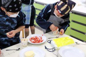 「おいしい!」「きれいにできたよ!」と喜ぶ子供たちの笑顔が印象的で、みんな大満足のお楽しみ会となりました。