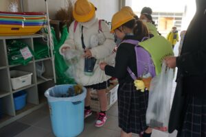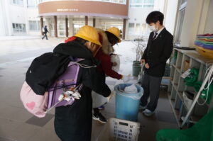 1月、2月は積雪のため実施できませんでしたが、今日は久しぶりにごみ拾いボランティアを行い、多くの子供たちがごみ袋を片手に登校しました。