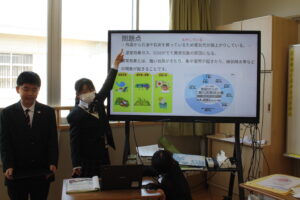 それぞれのテーマについて班で調べたことをクイズ形式でまとめ、発表の練習もしました。