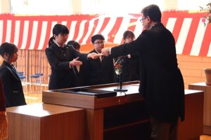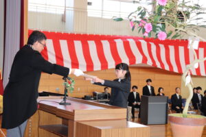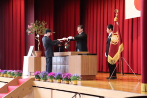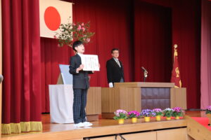 続いて行われた令和7年度修了式では、各学年の代表者が修了証を受け取り、1年間の学習を締めくくりました。