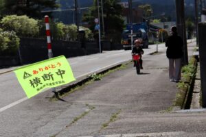 南砺警察署井口駐在所巡査部長様と、南砺市交通安全協会井口地域支部長様を講師にお迎えし、交通安全教室を実施しました。