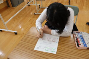 係会では、学年の枠を越えて意見を出し合い、協力しながら準備を進める姿が見られました。子供たちの真剣な表情や積極的な姿勢からは、今年の学習発表会テーマである