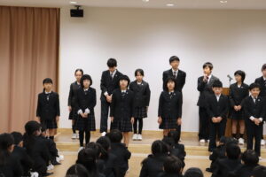 校長先生からは、3学期に大切にしてほしいこととして、「ありがとう」と感謝の気持ちを言葉にして伝えるというお話がありました。感謝の言葉は、自分の心も相手の心も温かくし、学校をより優しい場所にしてくれます。