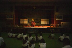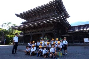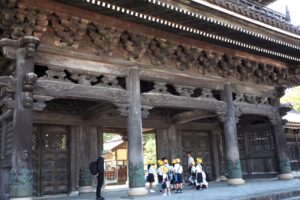 瑞泉寺では、建物の大きさと見事な木彫に圧倒されながら、「瑞泉寺は何歳ですか?」「柱は何本ありますか?」など、子供たちからたくさんの質問が出ました。