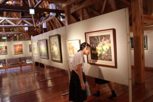 たいら郷土館での「和紙ちぎり絵展」では、まるで絵具を使った絵画のような繊細なちぎり絵の作品の数々を興味津々に鑑賞しました。