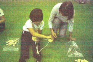 こきりこ館で、地域の伝統文化にふれる校外学習を行いました。まず「ミニささら作り」に挑戦しました。こきりこ踊りに使われる楽器「ささら」を、自分の手で作る体験を通して、木のぬくもりや職人の技にふれることができました。