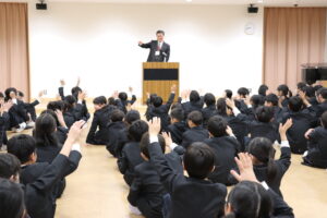 校長先生からは、3学期に大切にしてほしいこととして、「ありがとう」と感謝の気持ちを言葉にして伝えるというお話がありました。感謝の言葉は、自分の心も相手の心も温かくし、学校をより優しい場所にしてくれます。